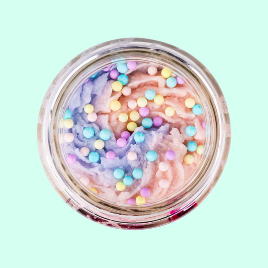 Nuestro Sugar Body Scrub es el héroe de la fiesta, pero tiene una regla: ¡solo está invitado a la fiesta de tu cuerpo, desde los pies hasta el cuello! La piel del rostro es más delicada y sensible, y se merece un trato más suave. El azúcar en el Sugar Body Scrub puede ser un poco intenso para la piel de tu cara. No se debe utilizar en el rostro.